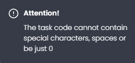 3. You can also change the task (question) code using the rounded field next to the task list. The code of a task is important for identifying the question in the database and also for viewing the answers on the platform. OW Voices will always place the screen "T" followed by a natural number in ascending order for the task codes.