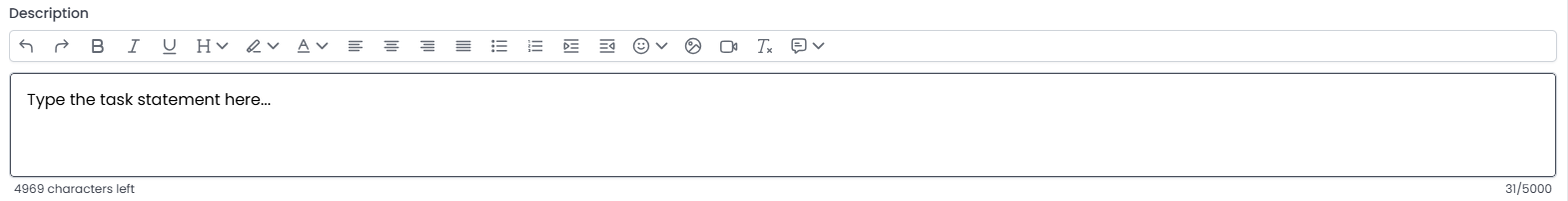 2. Use the text box to write the question statement, instructions and any other information you deem necessary. Adjust the text formatting using the icons (bold, italics, background colors, text colors, alignment, etc).