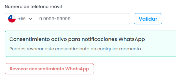 Listo. Las notificaciones vía WhatsApp estarán habilitadas.