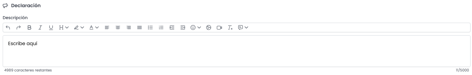 2. Utiliza el cuadro de texto para escribir el enunciado de la pregunta, las instrucciones y cualquier otra información que consideres necesaria. Ajusta la formatización del texto utilizando los íconos (negrita, cursiva, colores de fondo, colores de texto, alineación, etc.).