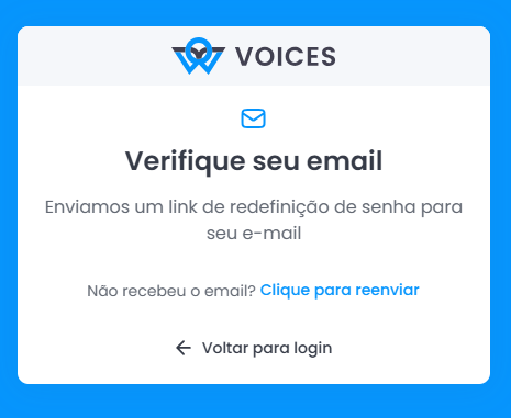 3. Após o envio, um e-mail com o link de redefinição de senha será enviado para sua caixa de entrada.