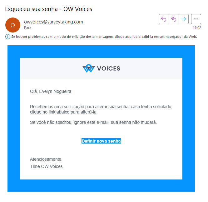 4. O e-mail recebido conterá um botão chamado “Definir nova senha”.
