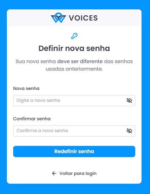2. Em seguida, será exibida a página de redefinição de senha.