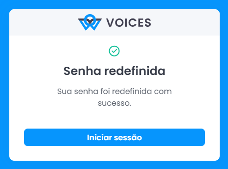 6. Após a redefinição, será exibida uma mensagem informando que a senha foi alterada com sucesso.