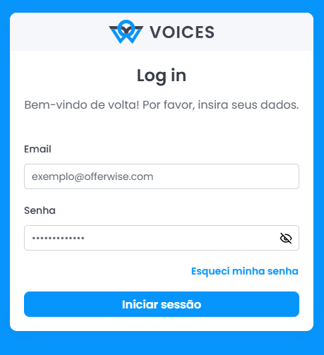 1. Para começar, acesse a página de login e clique em “Esqueci minha senha”.